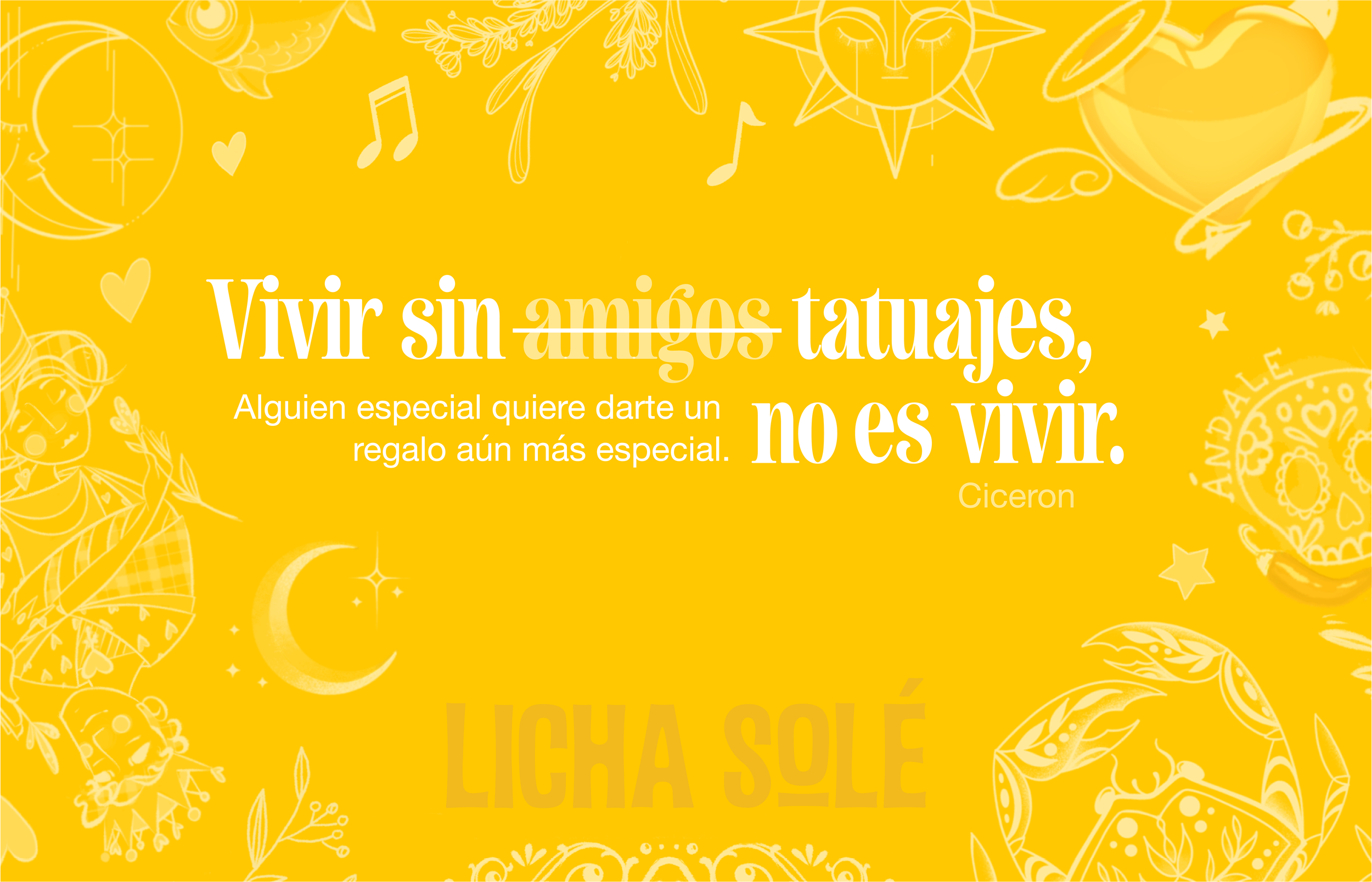 Tarjeta de regalo física por un tatuaje personalizado en negro o a color. Repaso al mes (si fuese necesario).